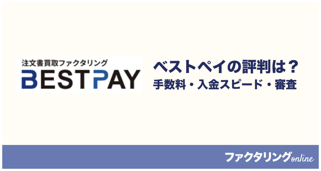 「ベストペイは信頼できるファクタリング会社なの?」「実際の利用者の評判や口コミを知りたい」「手数料や審査の厳しさはどうなの?」 ベストペイは、注文書ファクタリングに特化した資金調達サービスです。 受注直後から資金調達が可能な点が特徴で、納... タイプ別おすすめ業者